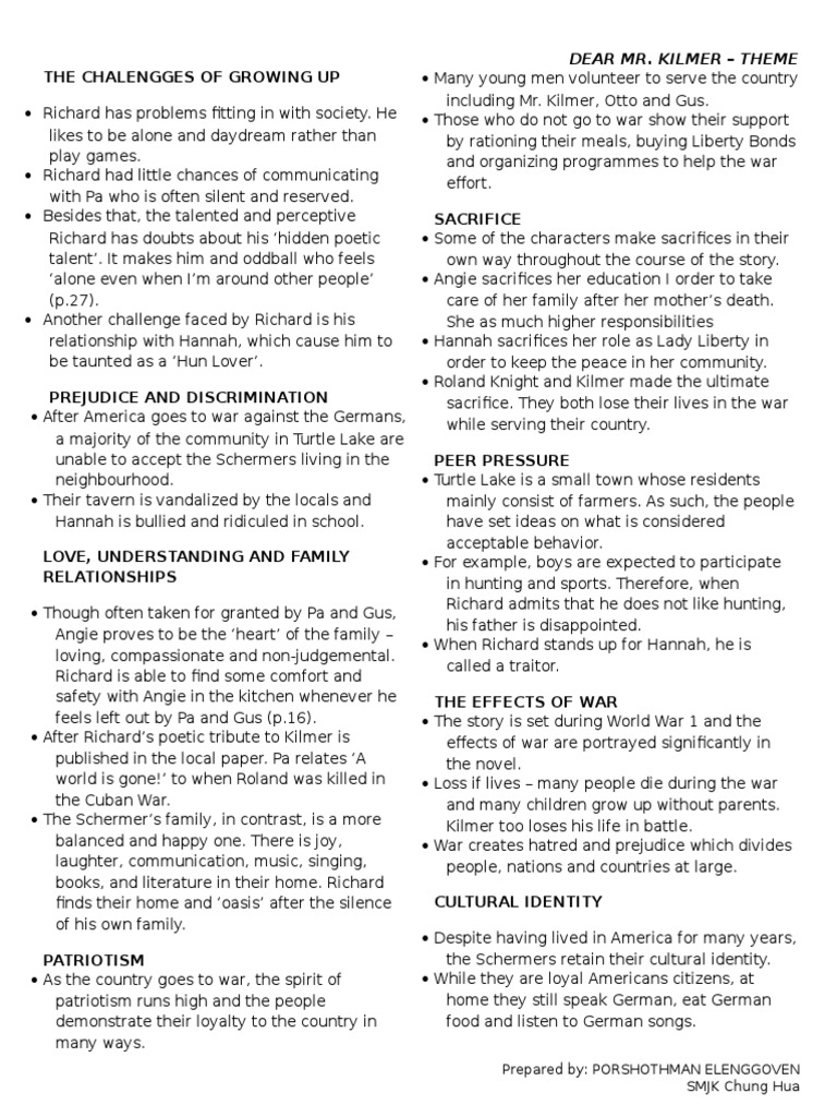 Dear Mr Kilmer Docx 5 Love Is Important In A Family How Is This Shown In The Novel You Have Studied Love Is Care For Our Loved Ones When There Is